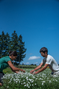 Baptiste: The garden is our centre of activity. We grow between 15 and 20 different plant and flower species following the organic agriculture guidelines. For us this is not a challenge – it is just the natural way of doing things in accordance with nature. Like every organic garden, we have to work according to the seasons’ rhythms and natural elements, so our garden is the one that decides when the next batch of cosmetics will be ready, how many we can produce, etc. Everything depends on the harvest. Beauty Garden has worked like this since day one, and our way of working with nature will never change. (Photo: Carole and Baptiste recollecting flowers to produce Beauty Garden’s cosmetics. Credits: Dan Courtice).